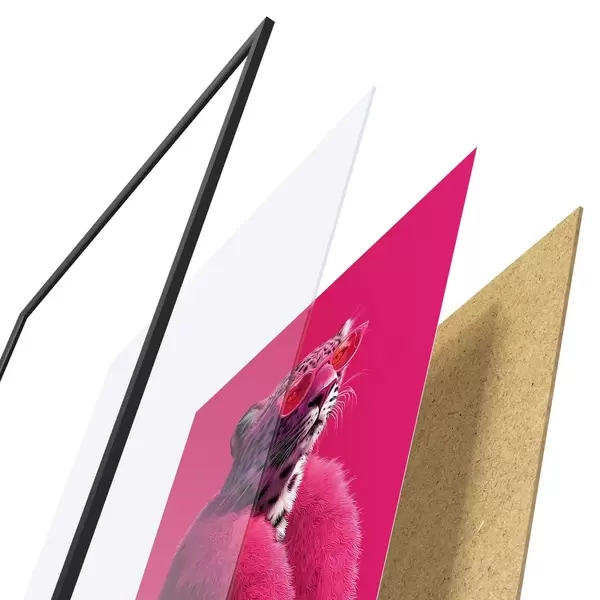 Plakát se skládá z rámu, plexiskla, tištěného obrazu a dřevotřískového podkladu. Díky úchytům na zadní straně lze plakát ihned zavěsit na zeď.
