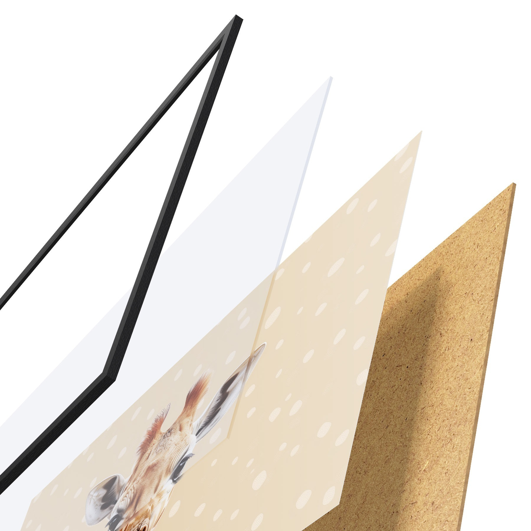 Plakát se skládá z rámu, plexiskla, tištěného obrazu a dřevotřískového podkladu. Díky úchytům na zadní straně lze plakát ihned zavěsit na zeď.