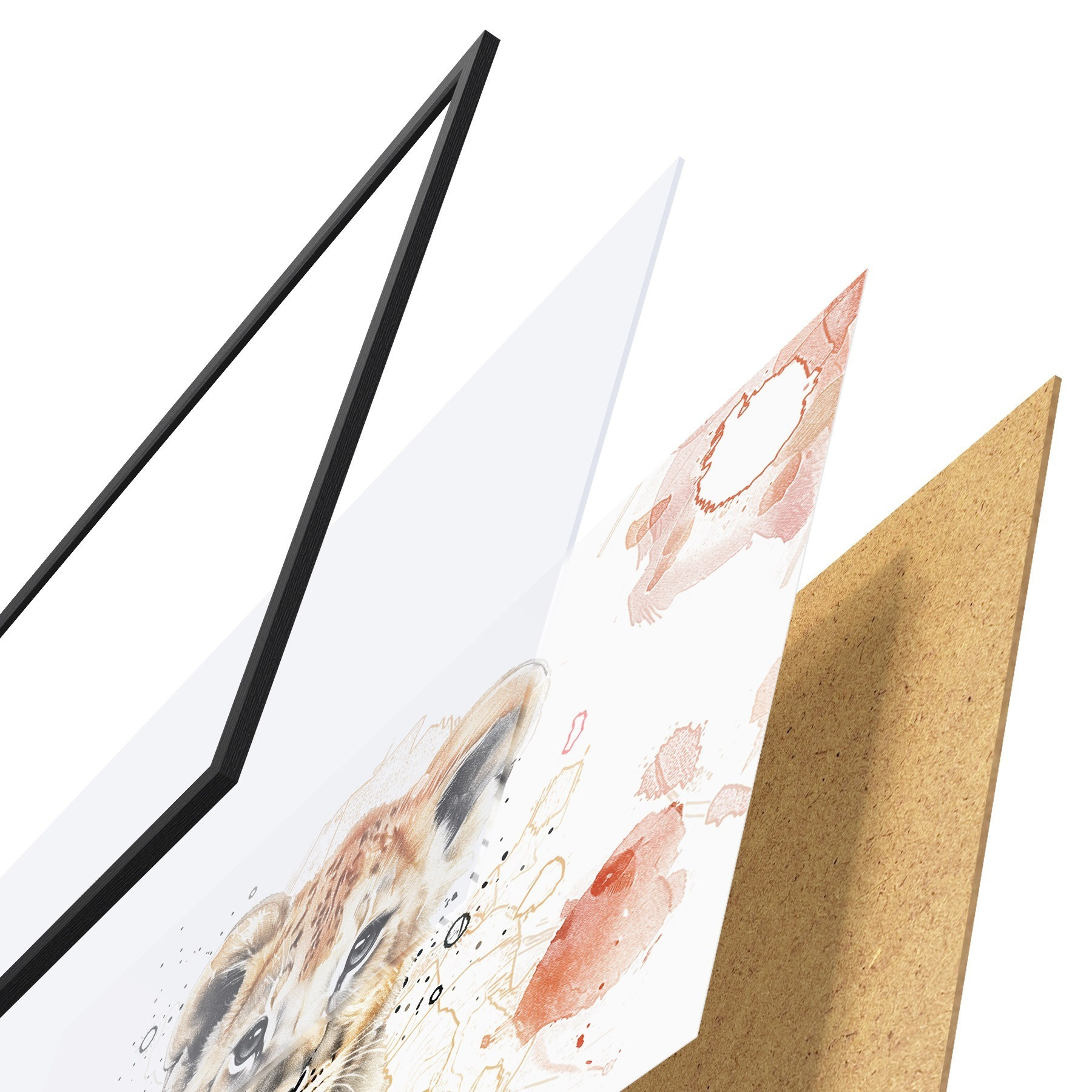 Plakát se skládá z rámu, plexiskla, tištěného obrazu a dřevotřískového podkladu. Díky úchytům na zadní straně lze plakát ihned zavěsit na zeď.