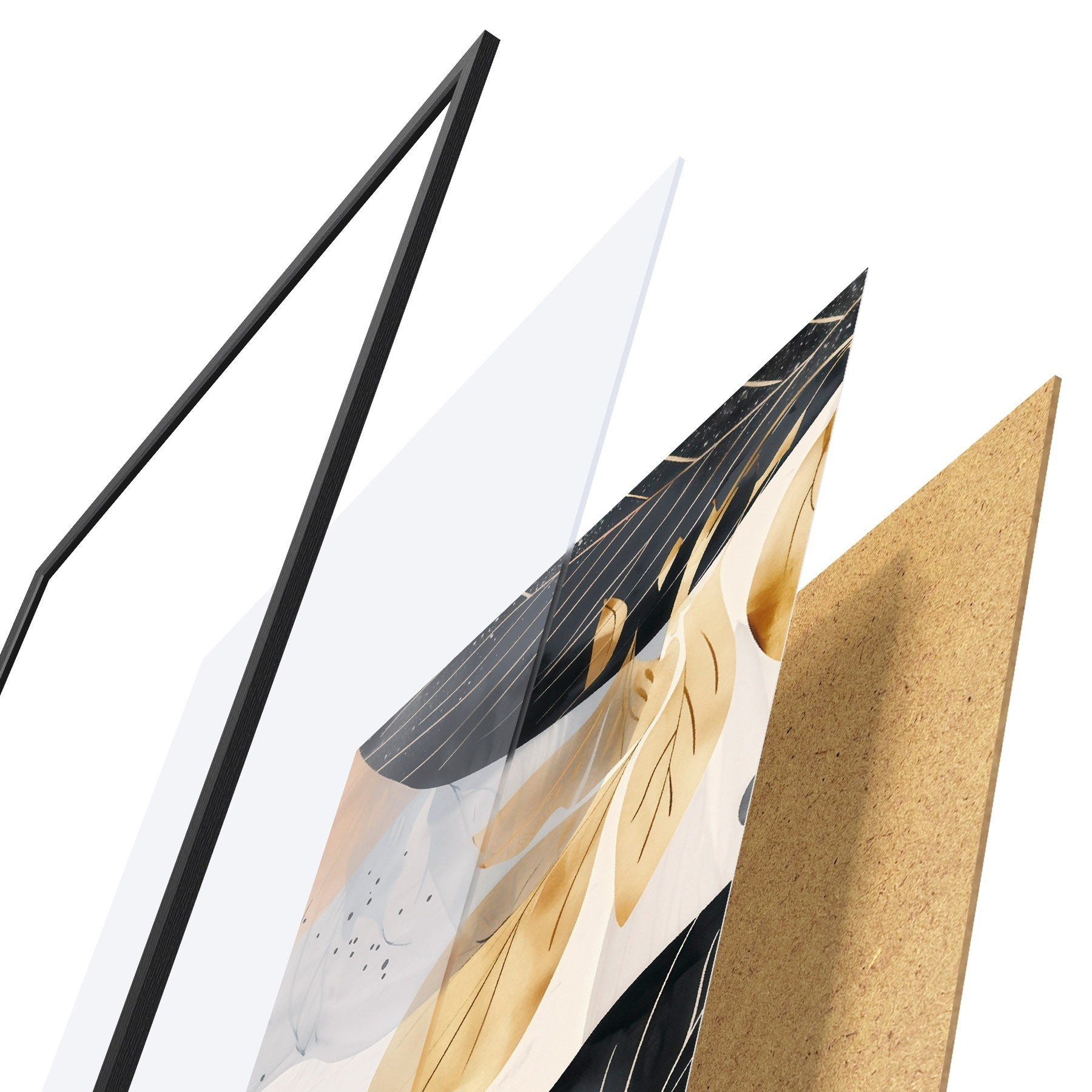 Plakát se skládá z rámu, plexiskla, tištěného obrazu a dřevotřískového podkladu. Díky úchytům na zadní straně lze plakát ihned zavěsit na zeď.
