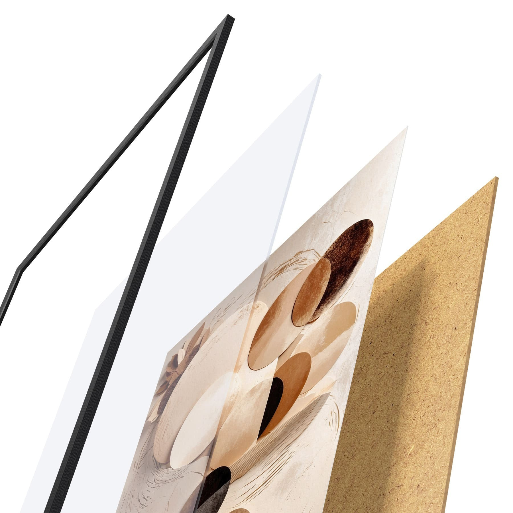 Plakát se skládá z rámu, plexiskla, tištěného obrazu a dřevotřískového podkladu. Díky úchytům na zadní straně lze plakát ihned zavěsit na zeď.