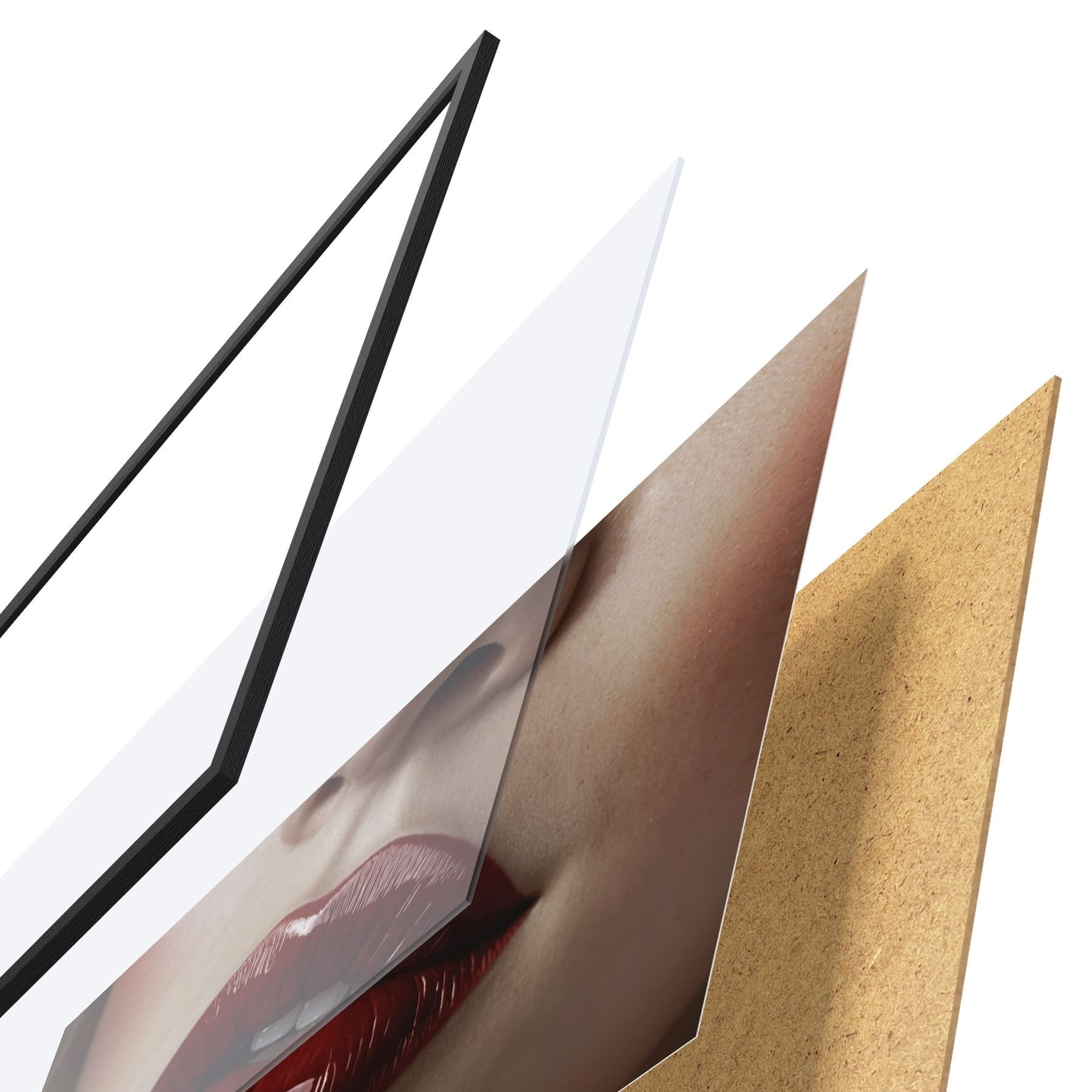 Plakát se skládá z rámu, plexiskla, tištěného obrazu a dřevotřískového podkladu. Díky úchytům na zadní straně lze plakát ihned zavěsit na zeď.