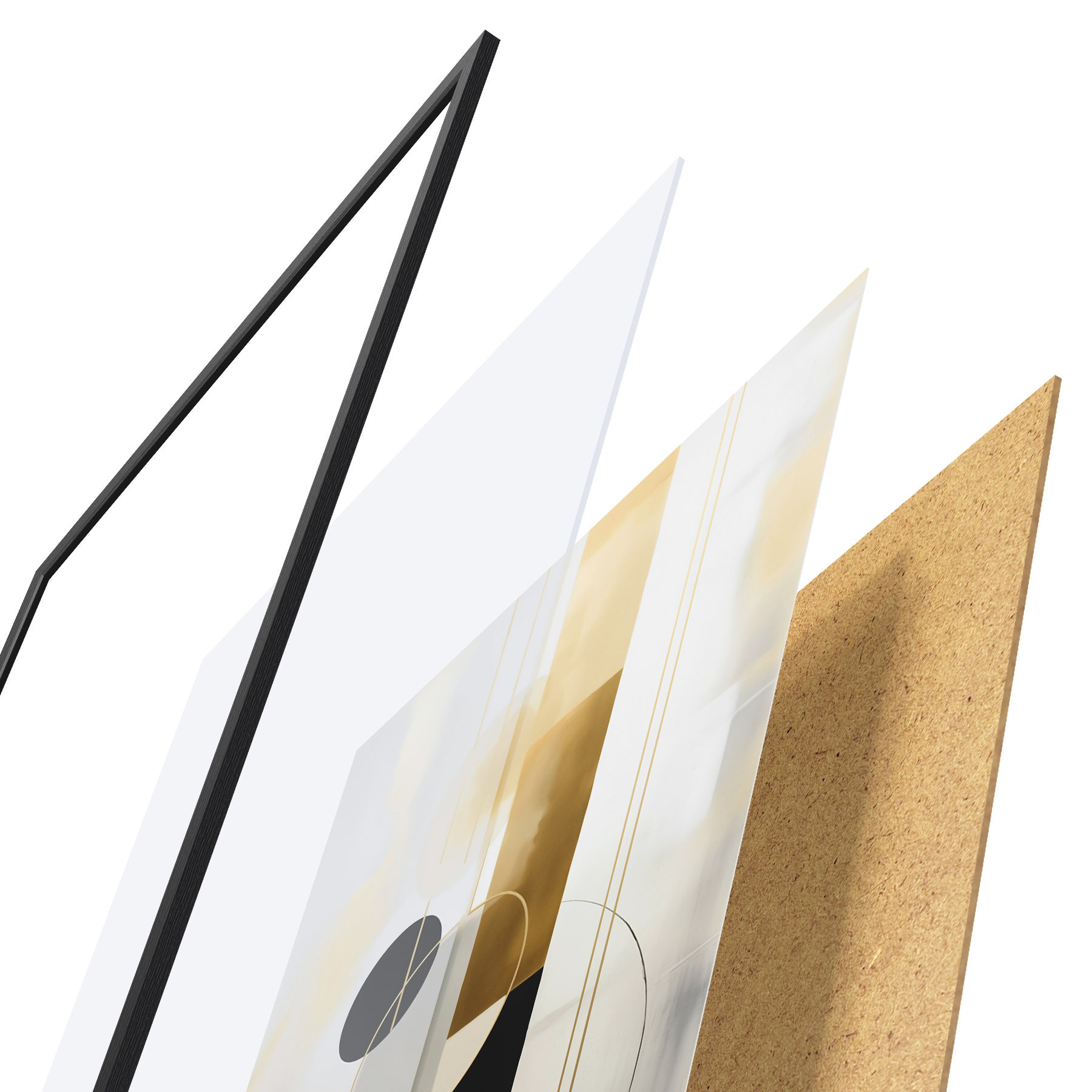 Plakát se skládá z rámu, plexiskla, tištěného obrazu a dřevotřískového podkladu. Díky úchytům na zadní straně lze plakát ihned zavěsit na zeď.