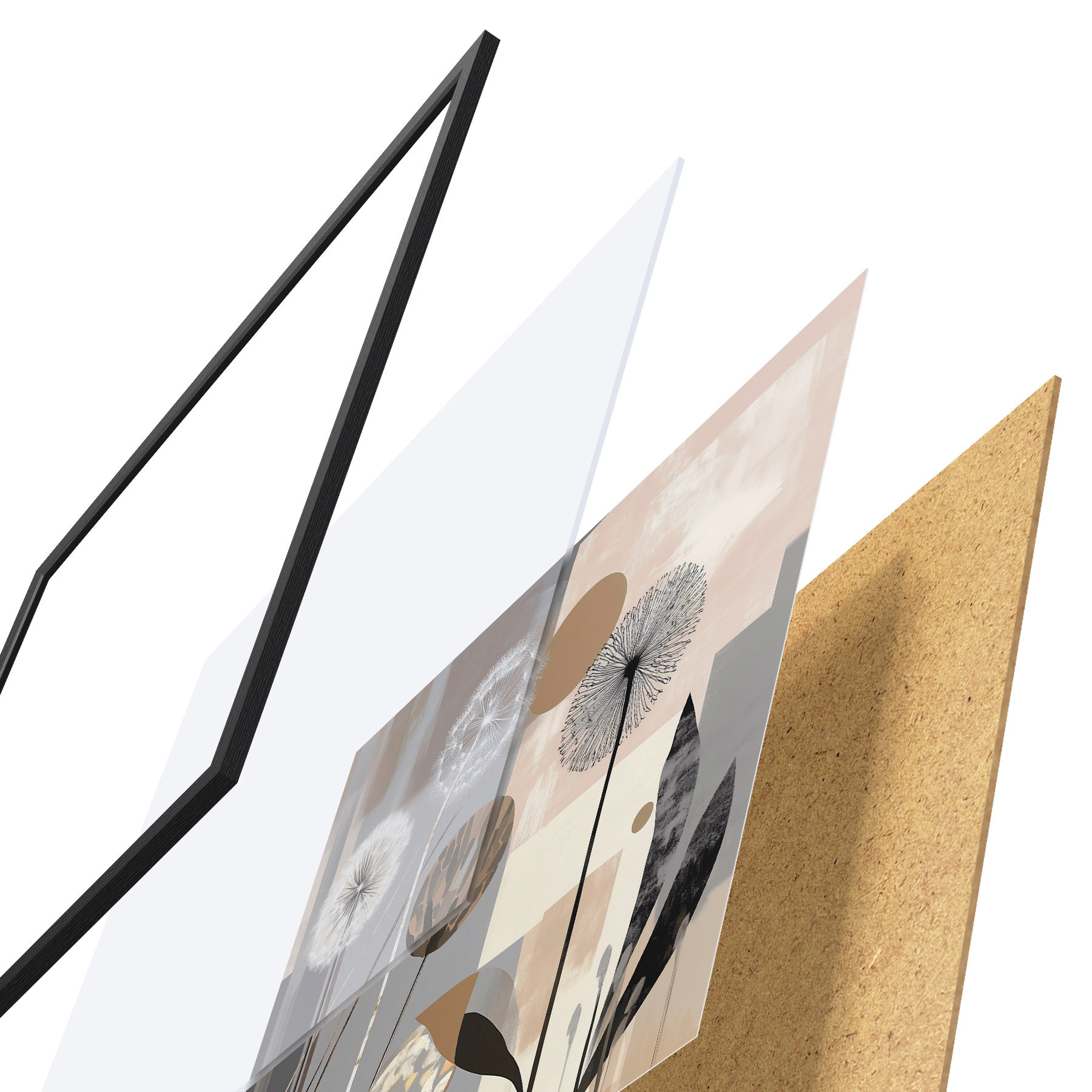 Plakát se skládá z rámu, plexiskla, tištěného obrazu a dřevotřískového podkladu. Díky úchytům na zadní straně lze plakát ihned zavěsit na zeď.