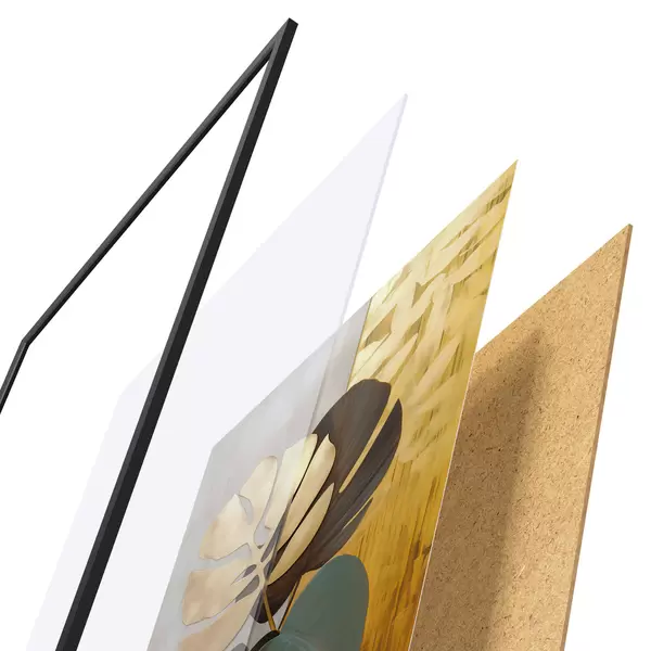 Plakát se skládá z rámu, plexiskla, tištěného obrazu a dřevotřískového podkladu. Díky úchytům na zadní straně lze plakát ihned zavěsit na zeď.
