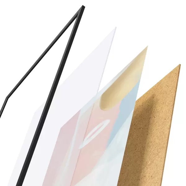 Plakát se skládá z rámu, plexiskla, tištěného obrazu a dřevotřískového podkladu. Díky úchytům na zadní straně lze plakát ihned zavěsit na zeď.