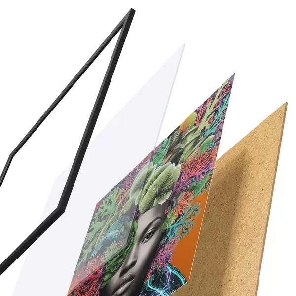Plakát se skládá z rámu, plexiskla, tištěného obrazu a dřevotřískového podkladu. Díky úchytům na zadní straně lze plakát ihned zavěsit na zeď.