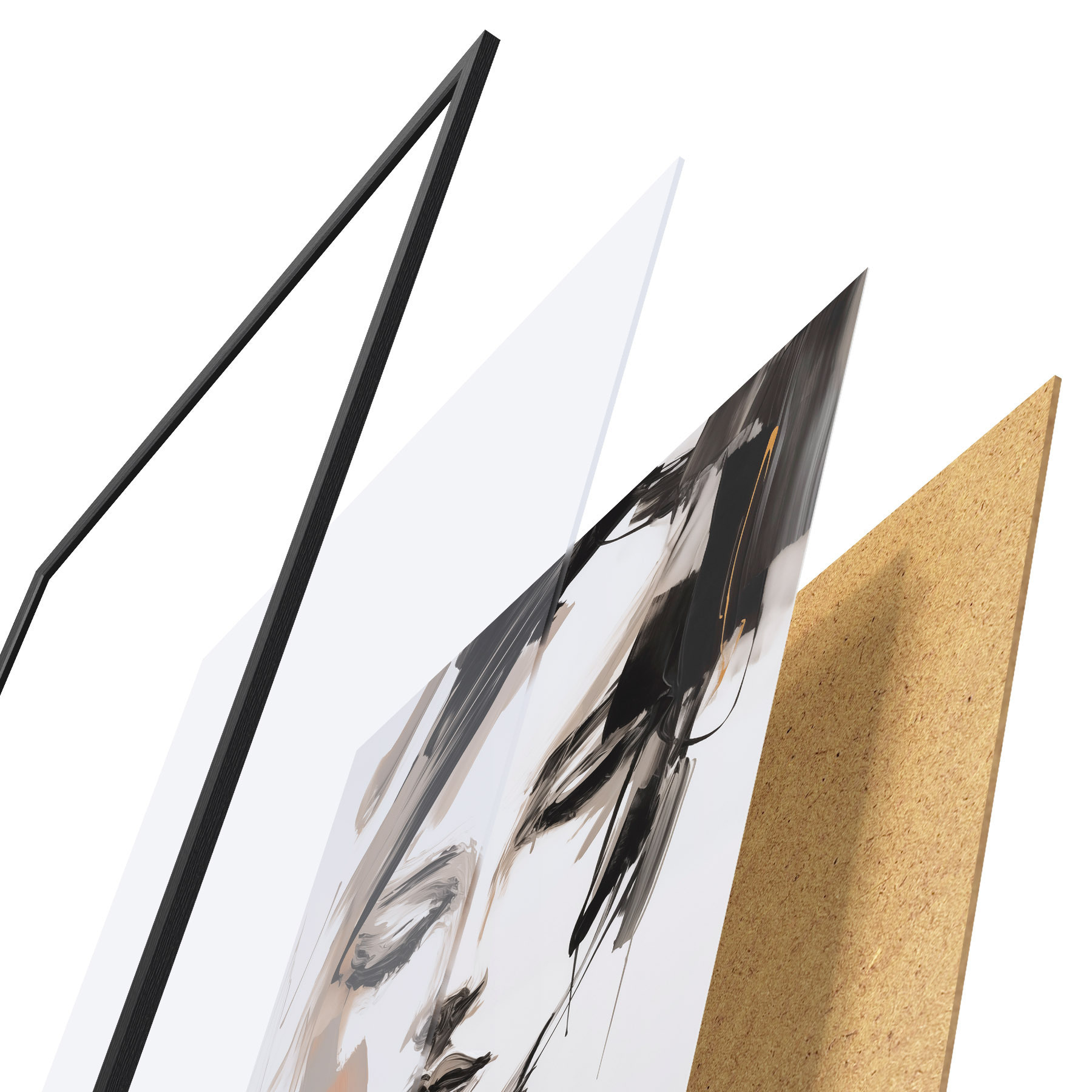 Plakát se skládá z rámu, plexiskla, tištěného obrazu a dřevotřískového podkladu. Díky úchytům na zadní straně lze plakát ihned zavěsit na zeď.