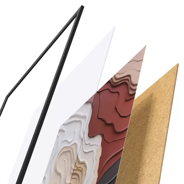 Plakát se skládá z rámu, plexiskla, tištěného obrazu a dřevotřískového podkladu. Díky úchytům na zadní straně lze plakát ihned zavěsit na zeď.