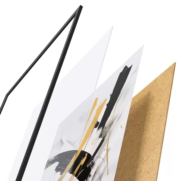 Plakát se skládá z rámu, plexiskla, tištěného obrazu a dřevotřískového podkladu. Díky úchytům na zadní straně lze plakát ihned zavěsit na zeď.