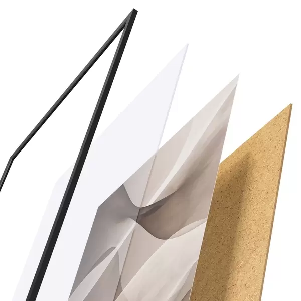 Plakát se skládá z rámu, plexiskla, tištěného obrazu a dřevotřískového podkladu. Díky úchytům na zadní straně lze plakát ihned zavěsit na zeď.