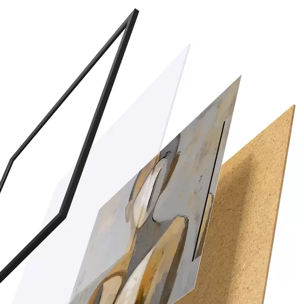 Plakát se skládá z rámu, plexiskla, tištěného obrazu a dřevotřískového podkladu. Díky úchytům na zadní straně lze plakát ihned zavěsit na zeď.