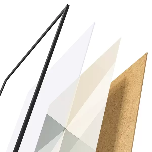 Plakát se skládá z rámu, plexiskla, tištěného obrazu a dřevotřískového podkladu. Díky úchytům na zadní straně lze plakát ihned zavěsit na zeď.