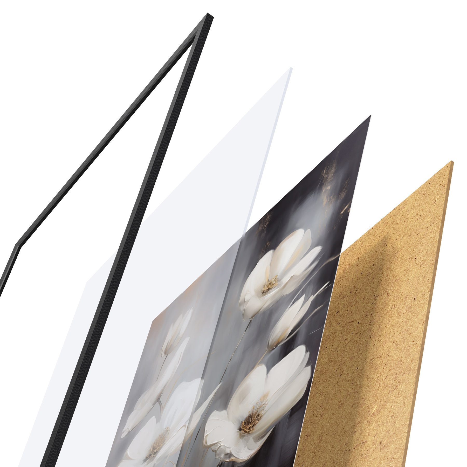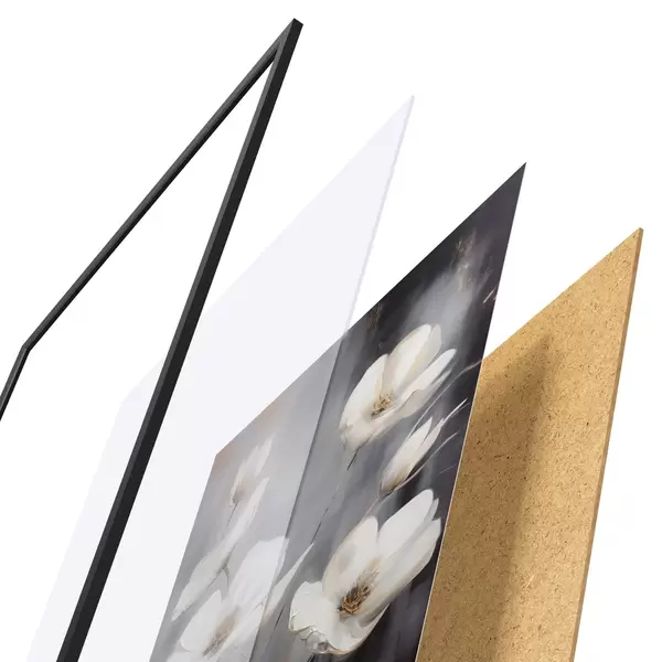 Plakát se skládá z rámu, plexiskla, tištěného obrazu a dřevotřískového podkladu. Díky úchytům na zadní straně lze plakát ihned zavěsit na zeď.