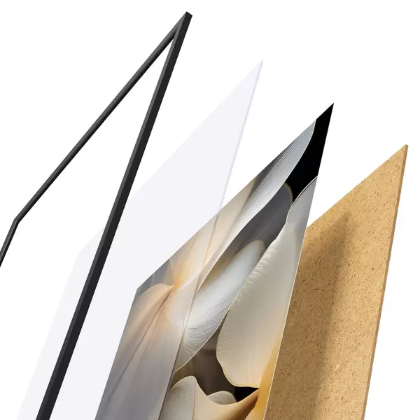 Plakát se skládá z rámu, plexiskla, tištěného obrazu a dřevotřískového podkladu. Díky úchytům na zadní straně lze plakát ihned zavěsit na zeď.