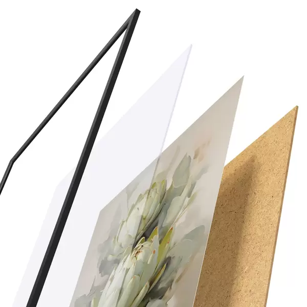 Plakát se skládá z rámu, plexiskla, tištěného obrazu a dřevotřískového podkladu. Díky úchytům na zadní straně lze plakát ihned zavěsit na zeď.