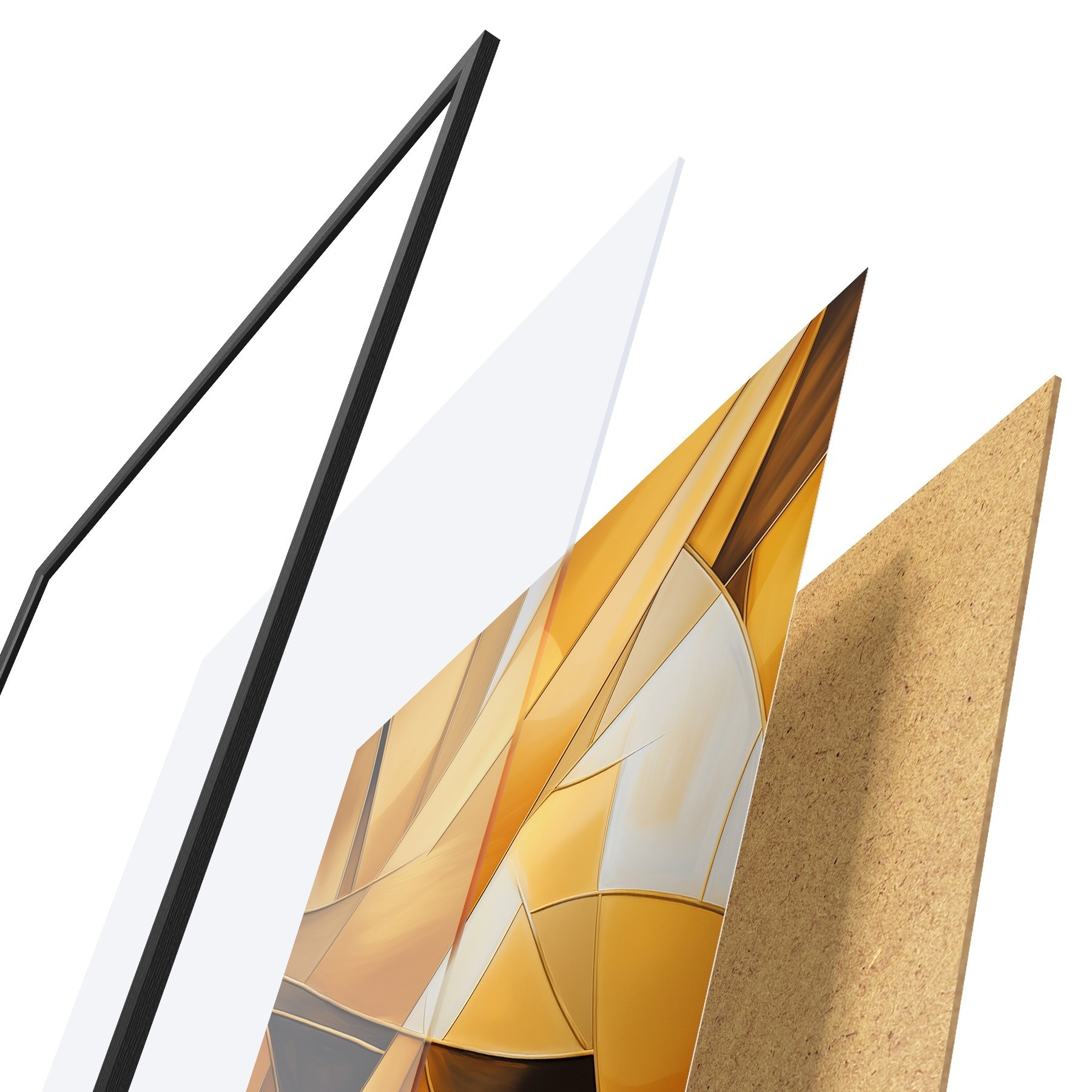 Plakát se skládá z rámu, plexiskla, tištěného obrazu a dřevotřískového podkladu. Díky úchytům na zadní straně lze plakát ihned zavěsit na zeď.