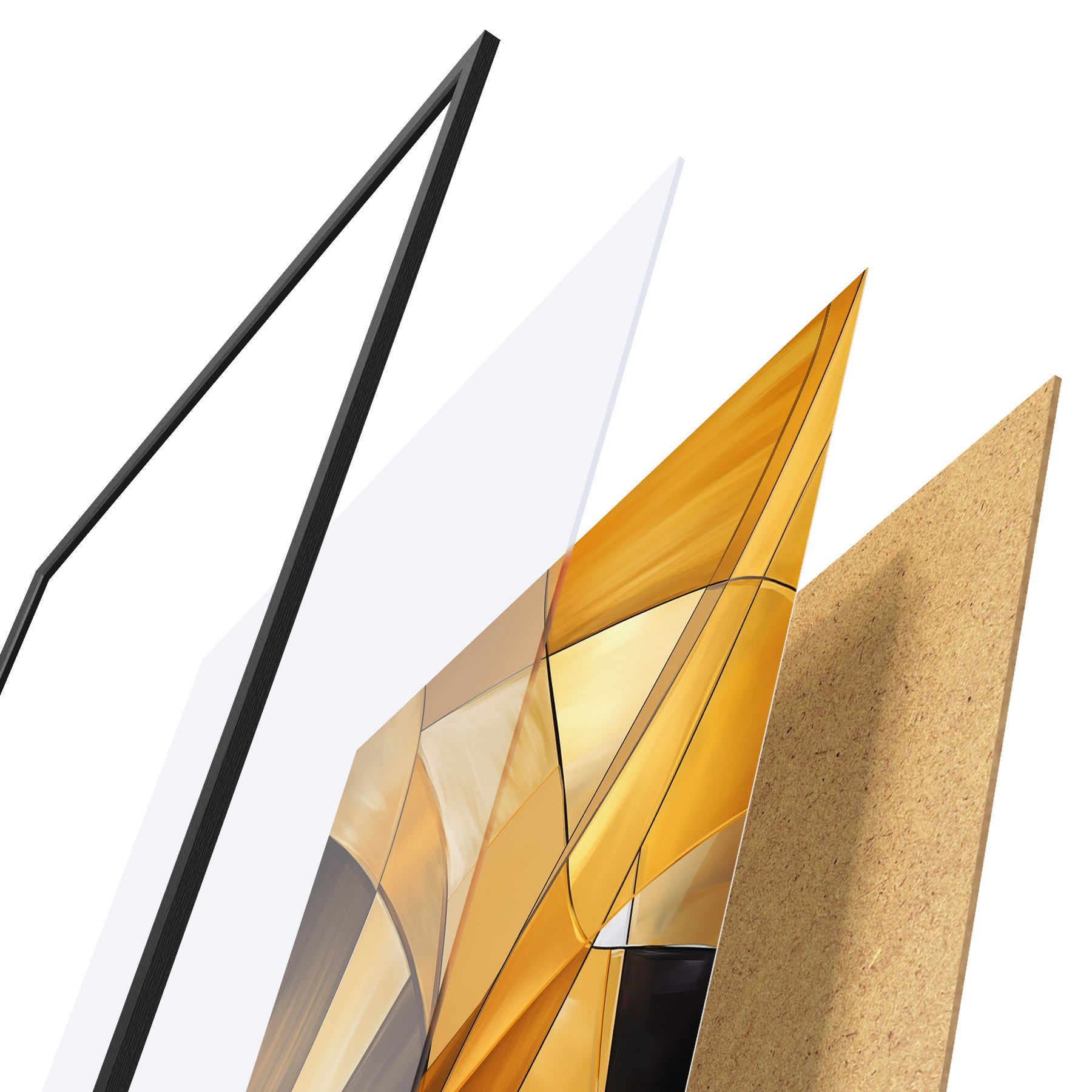 Plakát se skládá z rámu, plexiskla, tištěného obrazu a dřevotřískového podkladu. Díky úchytům na zadní straně lze plakát ihned zavěsit na zeď.