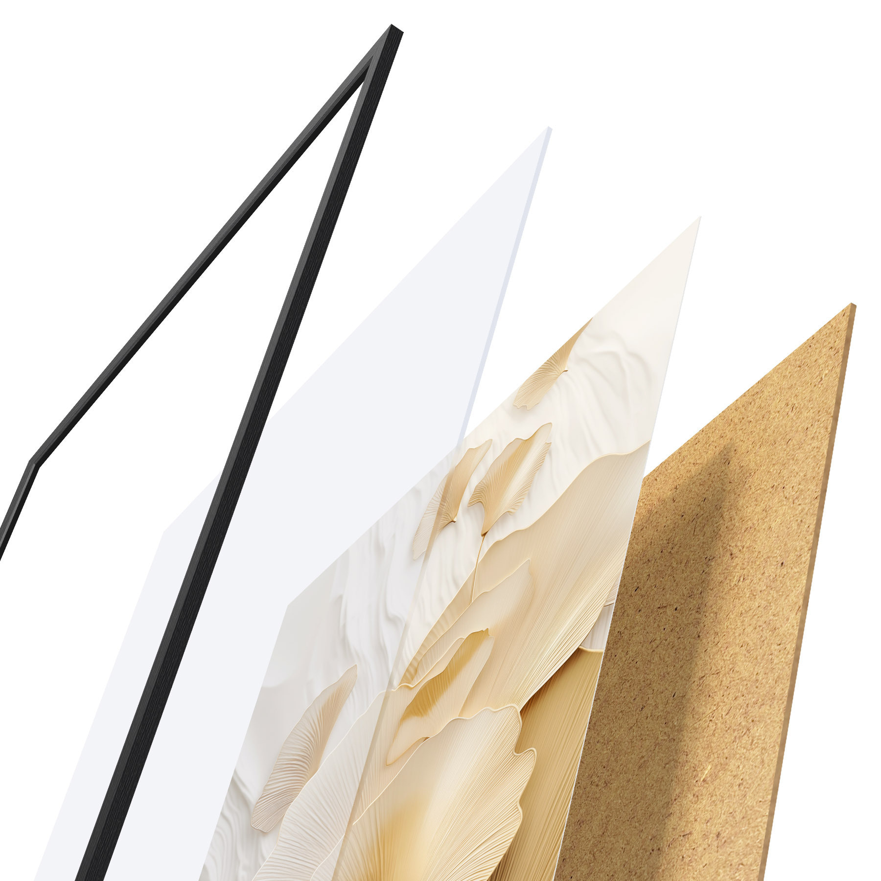 Plakát se skládá z rámu, plexiskla, tištěného obrazu a dřevotřískového podkladu. Díky úchytům na zadní straně lze plakát ihned zavěsit na zeď.