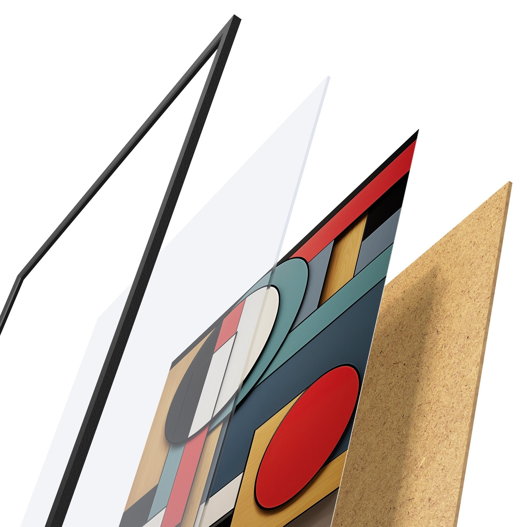 Plakát se skládá z rámu, plexiskla, tištěného obrazu a dřevotřískového podkladu. Díky úchytům na zadní straně lze plakát ihned zavěsit na zeď.