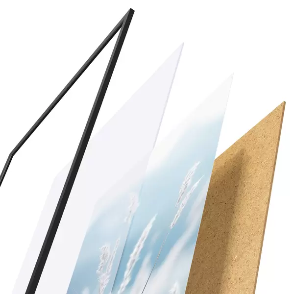 Plakát se skládá z rámu, plexiskla, tištěného obrazu a dřevotřískového podkladu. Díky úchytům na zadní straně lze plakát ihned zavěsit na zeď.