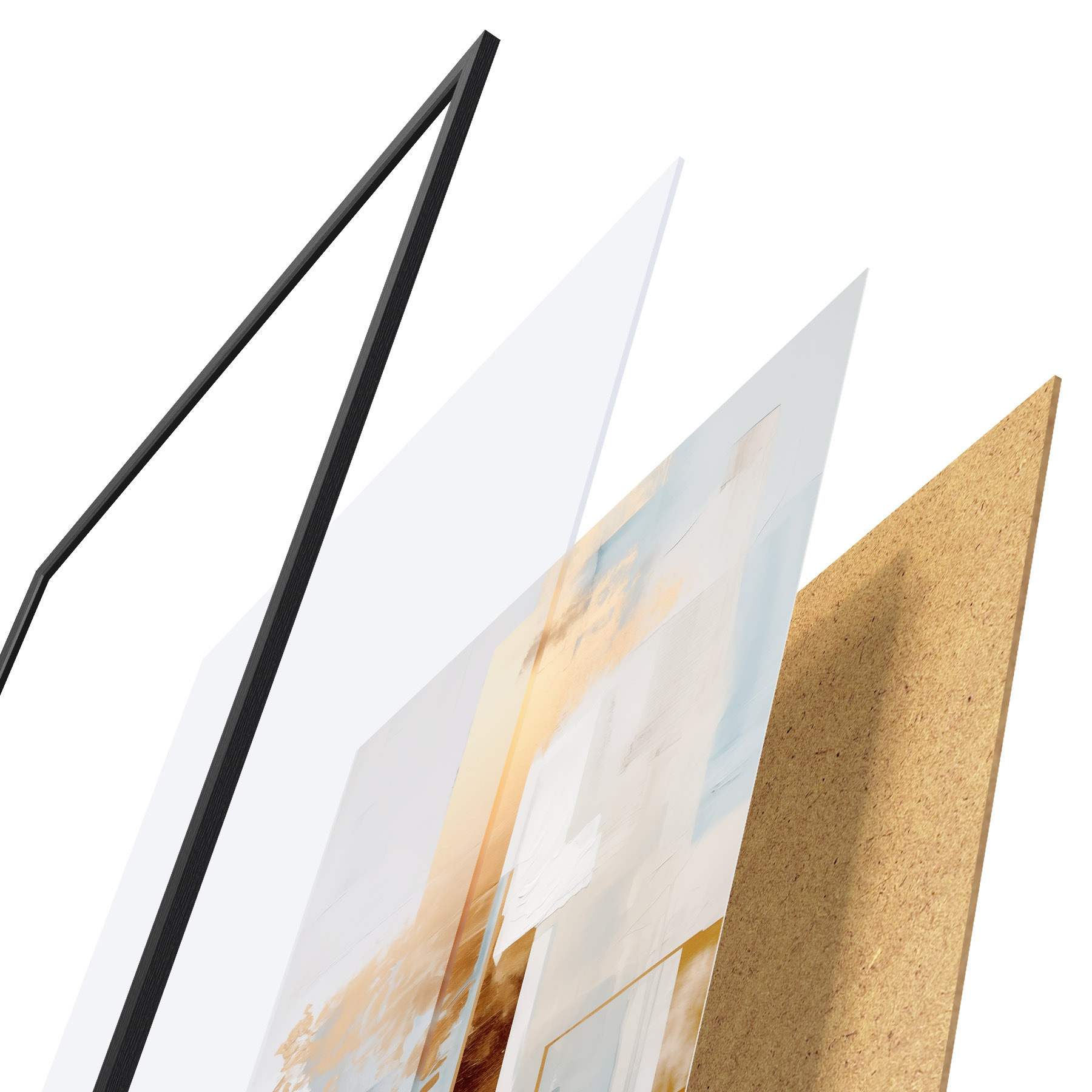 Plakát se skládá z rámu, plexiskla, tištěného obrazu a dřevotřískového podkladu. Díky úchytům na zadní straně lze plakát ihned zavěsit na zeď.