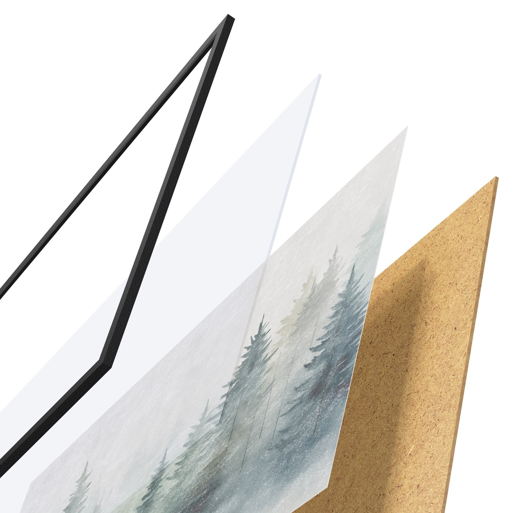 Plakát se skládá z rámu, plexiskla, tištěného obrazu a dřevotřískového podkladu. Díky úchytům na zadní straně lze plakát ihned zavěsit na zeď.