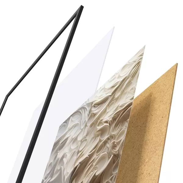 Plakát se skládá z rámu, plexiskla, tištěného obrazu a dřevotřískového podkladu. Díky úchytům na zadní straně lze plakát ihned zavěsit na zeď.