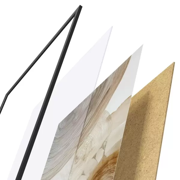 Plakát se skládá z rámu, plexiskla, tištěného obrazu a dřevotřískového podkladu. Díky úchytům na zadní straně lze plakát ihned zavěsit na zeď.