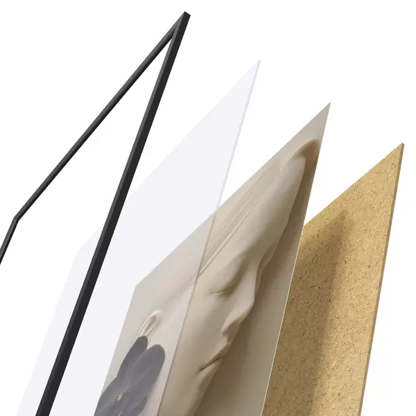 Plakát se skládá z rámu, plexiskla, tištěného obrazu a dřevotřískového podkladu. Díky úchytům na zadní straně lze plakát ihned zavěsit na zeď.