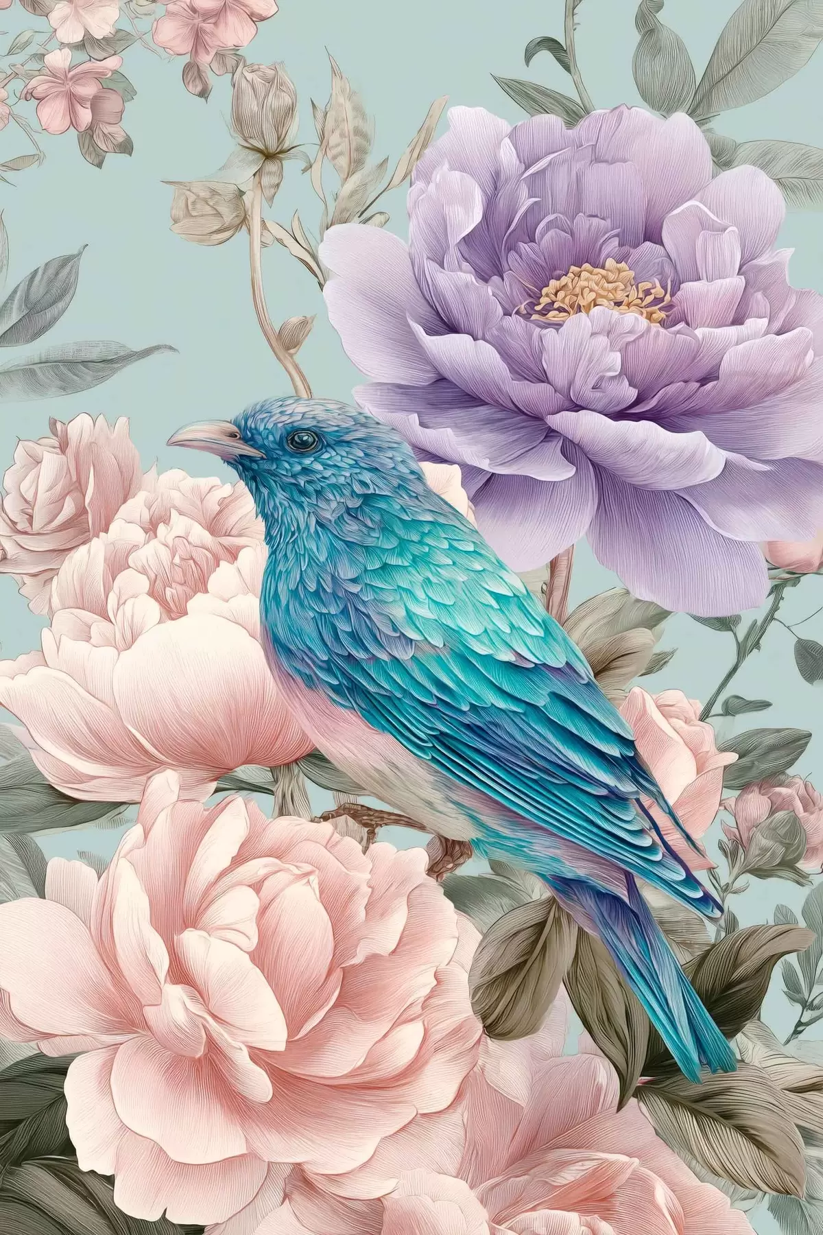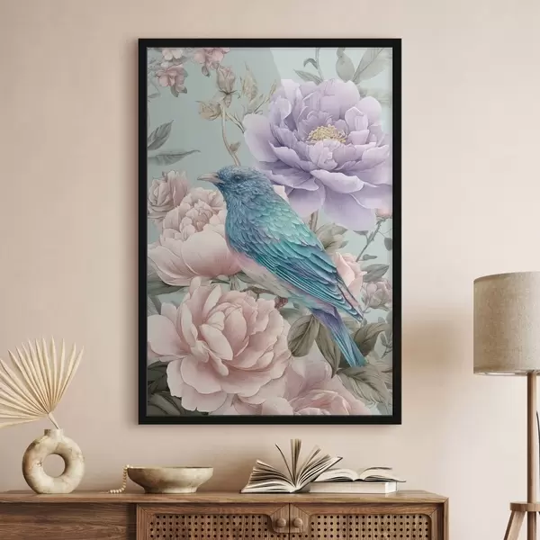 Poster zpívající ptáci v růžích f47944