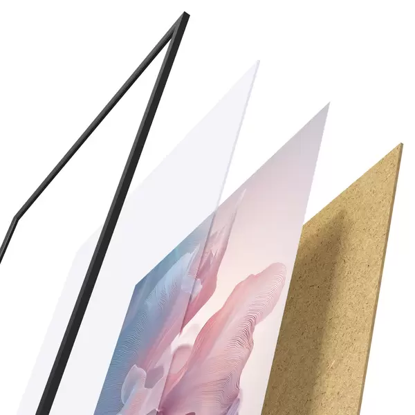 Plakát se skládá z rámu, plexiskla, tištěného obrazu a dřevotřískového podkladu. Díky úchytům na zadní straně lze plakát ihned zavěsit na zeď.
