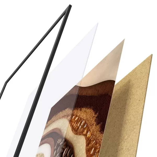Plakát se skládá z rámu, plexiskla, tištěného obrazu a dřevotřískového podkladu. Díky úchytům na zadní straně lze plakát ihned zavěsit na zeď.
