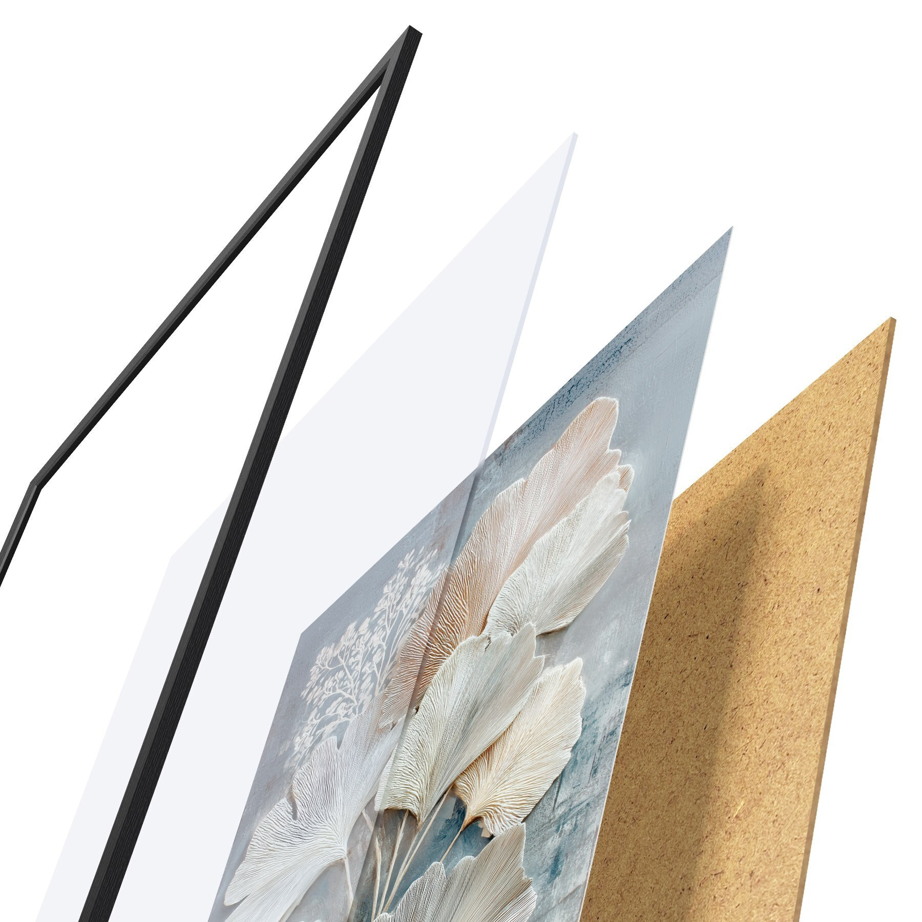 Plakát se skládá z rámu, plexiskla, tištěného obrazu a dřevotřískového podkladu. Díky úchytům na zadní straně lze plakát ihned zavěsit na zeď.