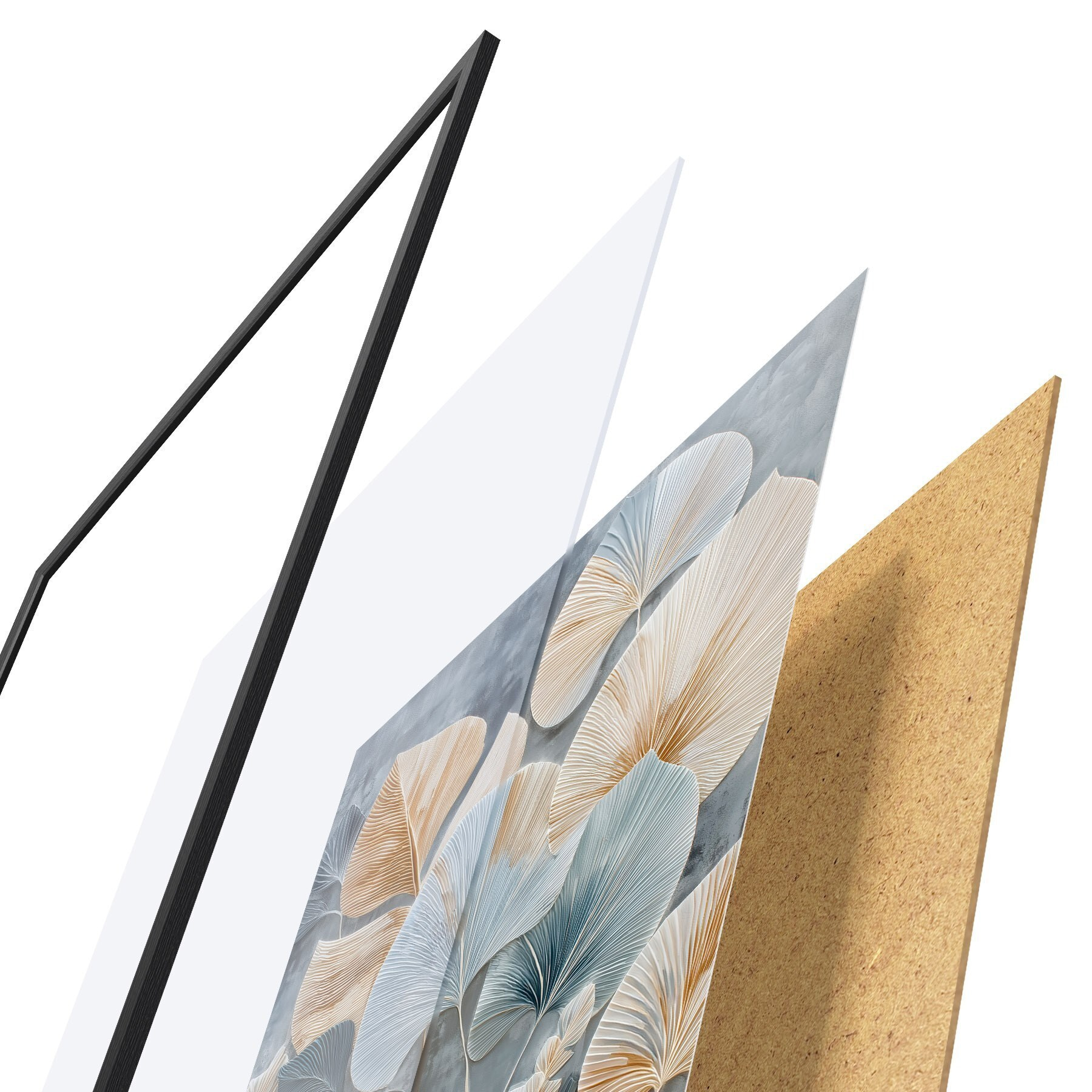 Plakát se skládá z rámu, plexiskla, tištěného obrazu a dřevotřískového podkladu. Díky úchytům na zadní straně lze plakát ihned zavěsit na zeď.