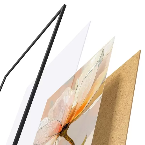 Plakát se skládá z rámu, plexiskla, tištěného obrazu a dřevotřískového podkladu. Díky úchytům na zadní straně lze plakát ihned zavěsit na zeď.