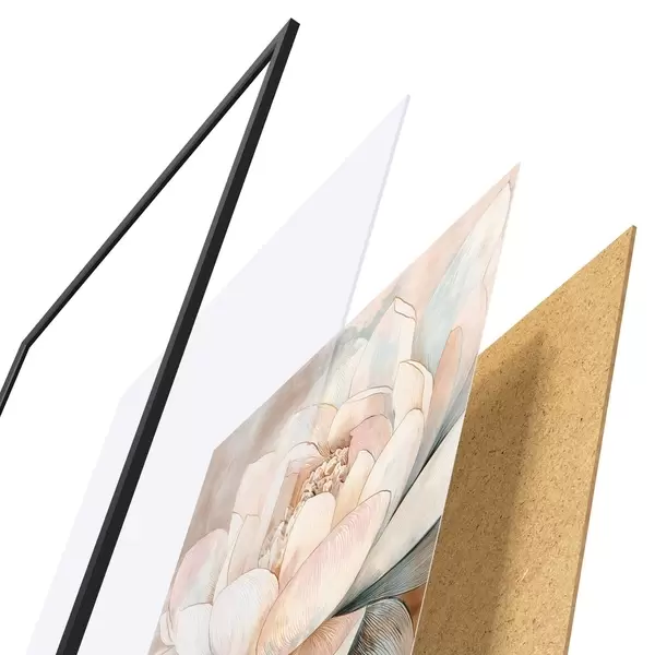 Plakát se skládá z rámu, plexiskla, tištěného obrazu a dřevotřískového podkladu. Díky úchytům na zadní straně lze plakát ihned zavěsit na zeď.