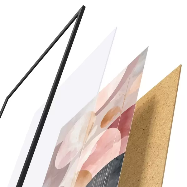 Plakát se skládá z rámu, plexiskla, tištěného obrazu a dřevotřískového podkladu. Díky úchytům na zadní straně lze plakát ihned zavěsit na zeď.