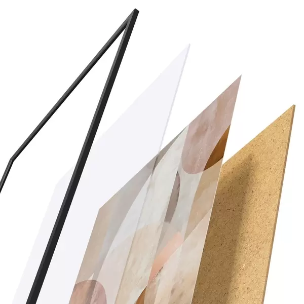 Plakát se skládá z rámu, plexiskla, tištěného obrazu a dřevotřískového podkladu. Díky úchytům na zadní straně lze plakát ihned zavěsit na zeď.