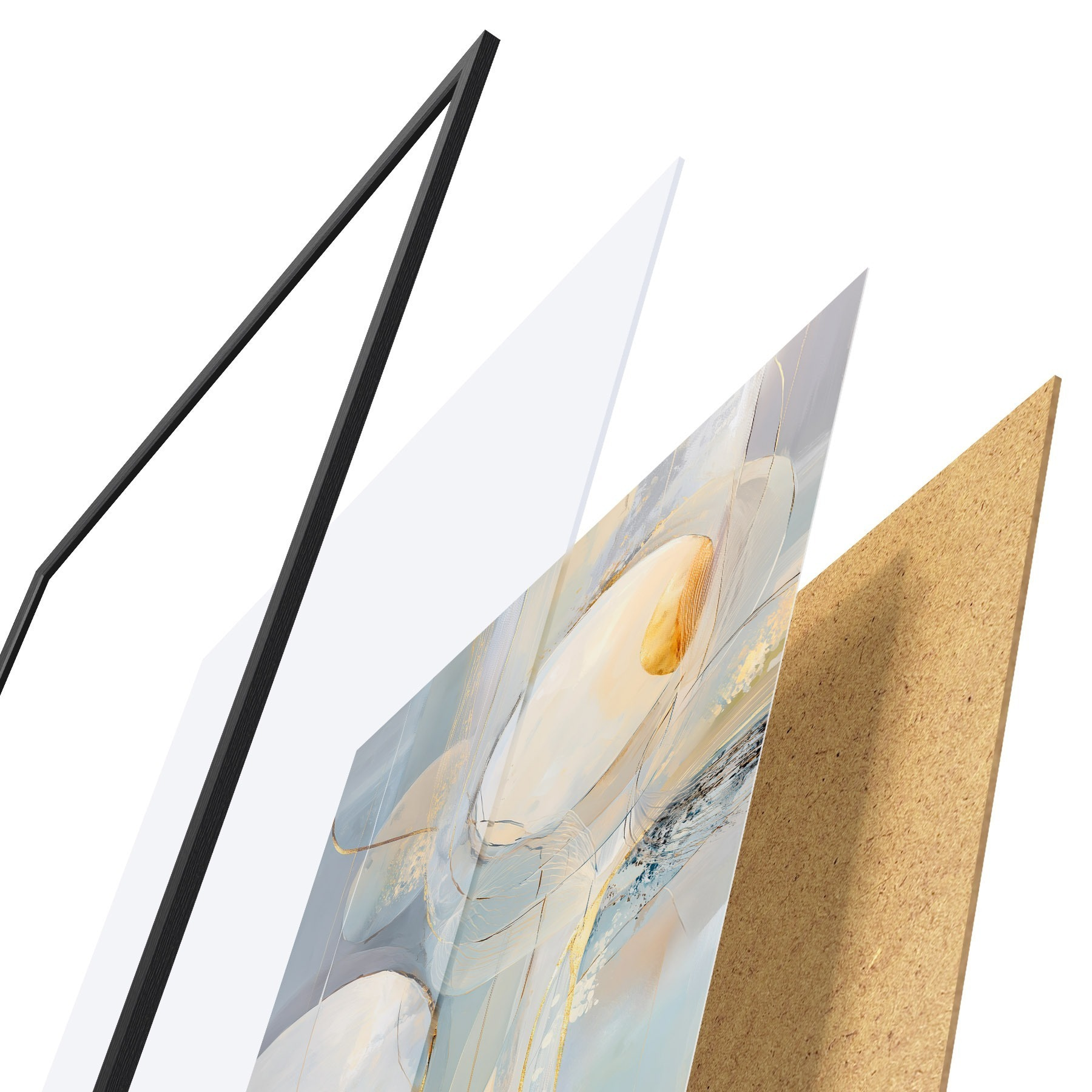 Plakát se skládá z rámu, plexiskla, tištěného obrazu a dřevotřískového podkladu. Díky úchytům na zadní straně lze plakát ihned zavěsit na zeď.