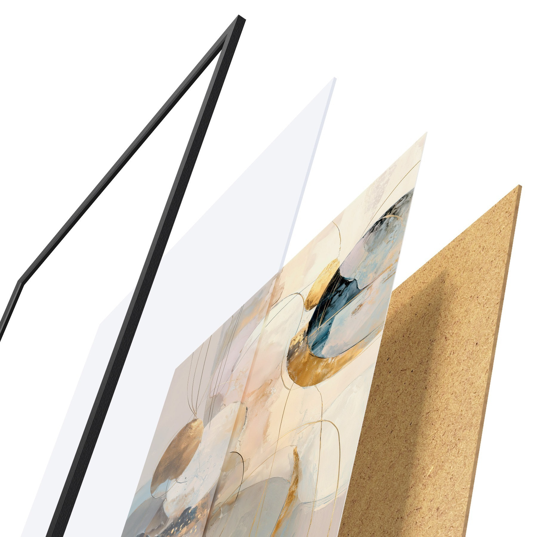 Plakát se skládá z rámu, plexiskla, tištěného obrazu a dřevotřískového podkladu. Díky úchytům na zadní straně lze plakát ihned zavěsit na zeď.