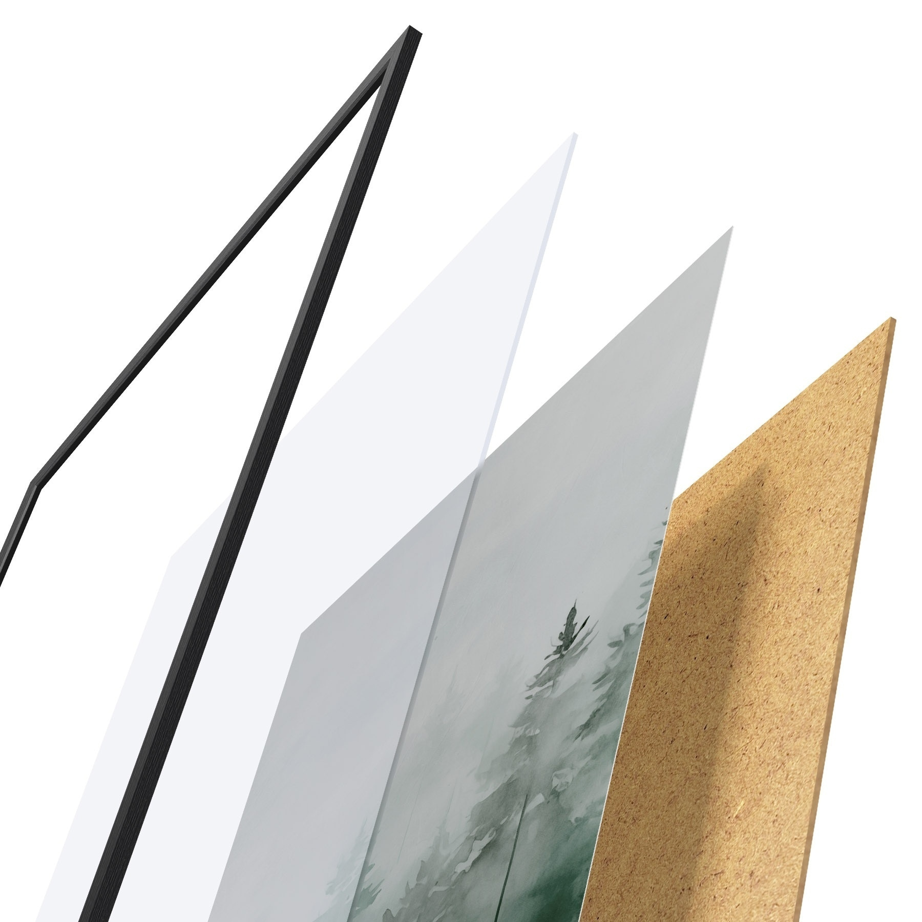 Plakát se skládá z rámu, plexiskla, tištěného obrazu a dřevotřískového podkladu. Díky úchytům na zadní straně lze plakát ihned zavěsit na zeď.