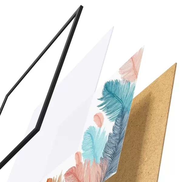 Plakát se skládá z rámu, plexiskla, tištěného obrazu a dřevotřískového podkladu. Díky úchytům na zadní straně lze plakát ihned zavěsit na zeď.