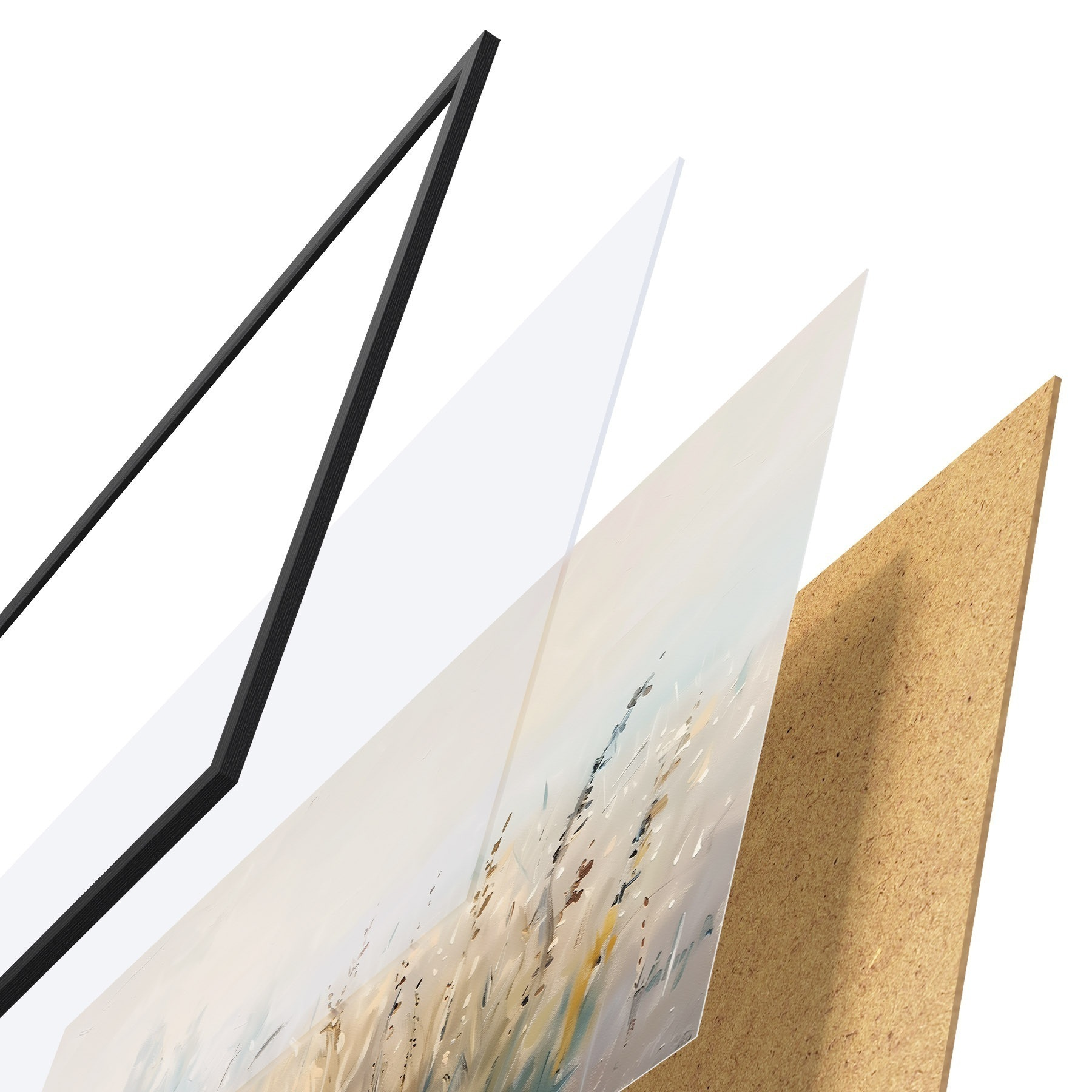 Plakát se skládá z rámu, plexiskla, tištěného obrazu a dřevotřískového podkladu. Díky úchytům na zadní straně lze plakát ihned zavěsit na zeď.