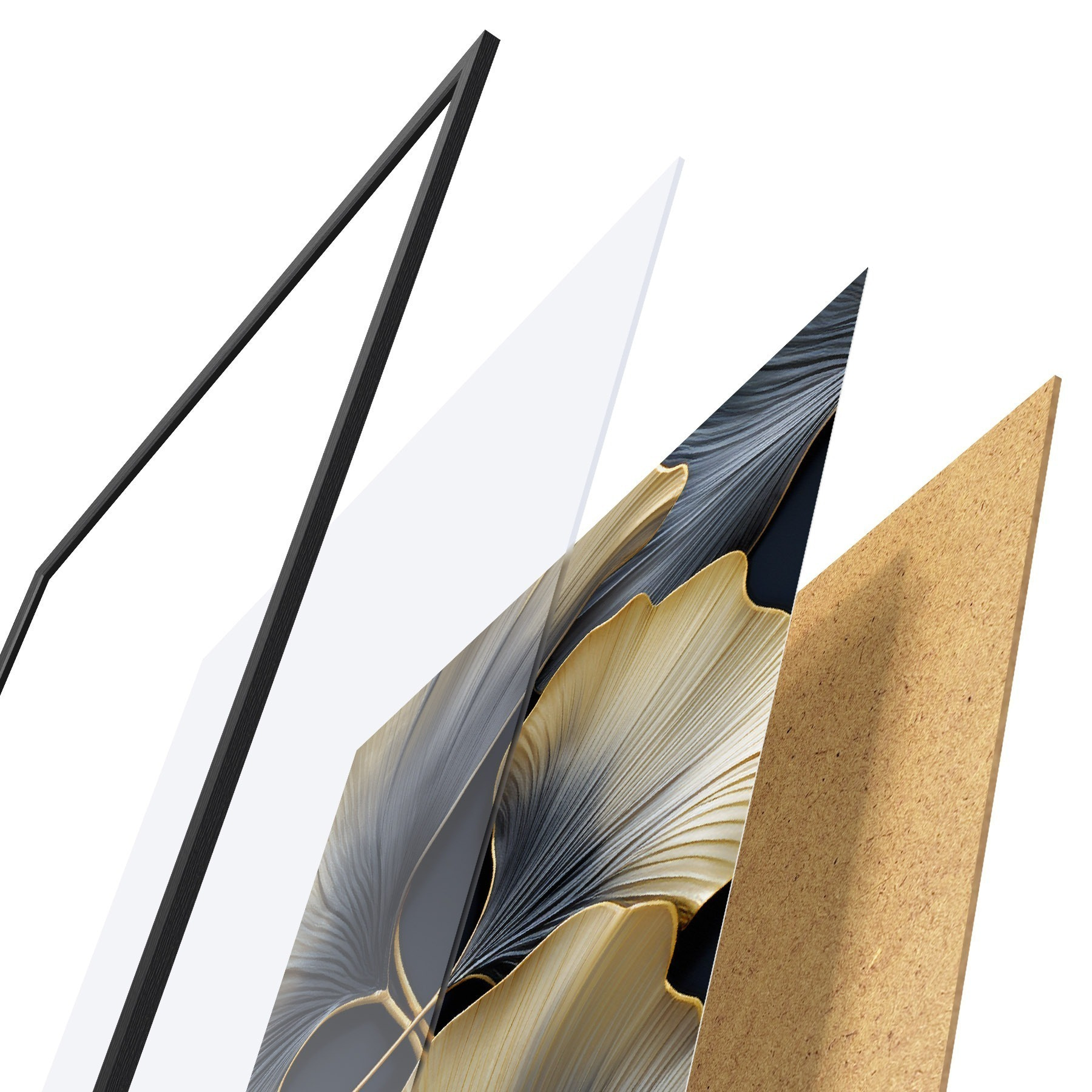 Plakát se skládá z rámu, plexiskla, tištěného obrazu a dřevotřískového podkladu. Díky úchytům na zadní straně lze plakát ihned zavěsit na zeď.