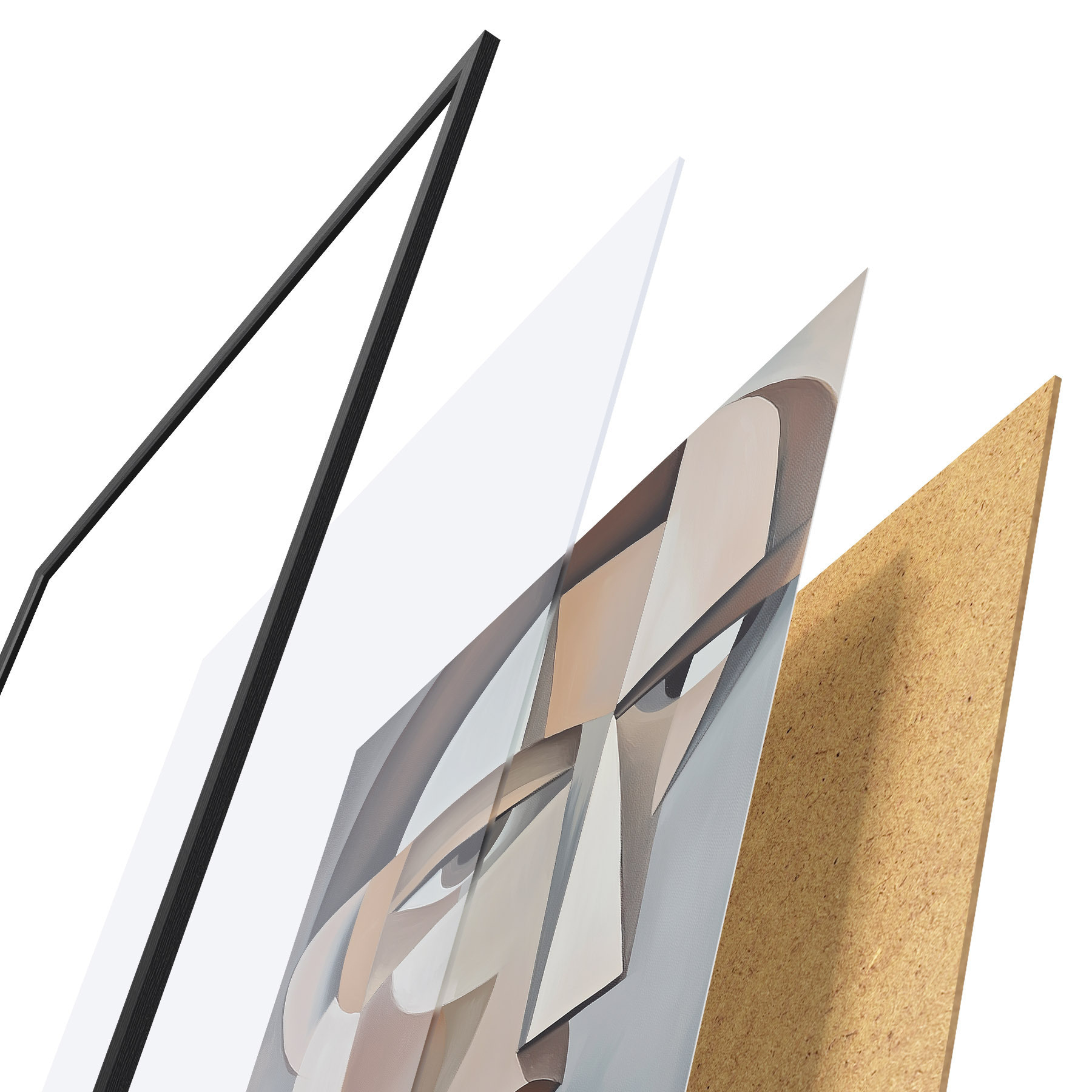 Plakát se skládá z rámu, plexiskla, tištěného obrazu a dřevotřískového podkladu. Díky úchytům na zadní straně lze plakát ihned zavěsit na zeď.