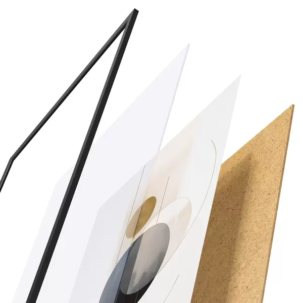 Plakát se skládá z rámu, plexiskla, tištěného obrazu a dřevotřískového podkladu. Díky úchytům na zadní straně lze plakát ihned zavěsit na zeď.