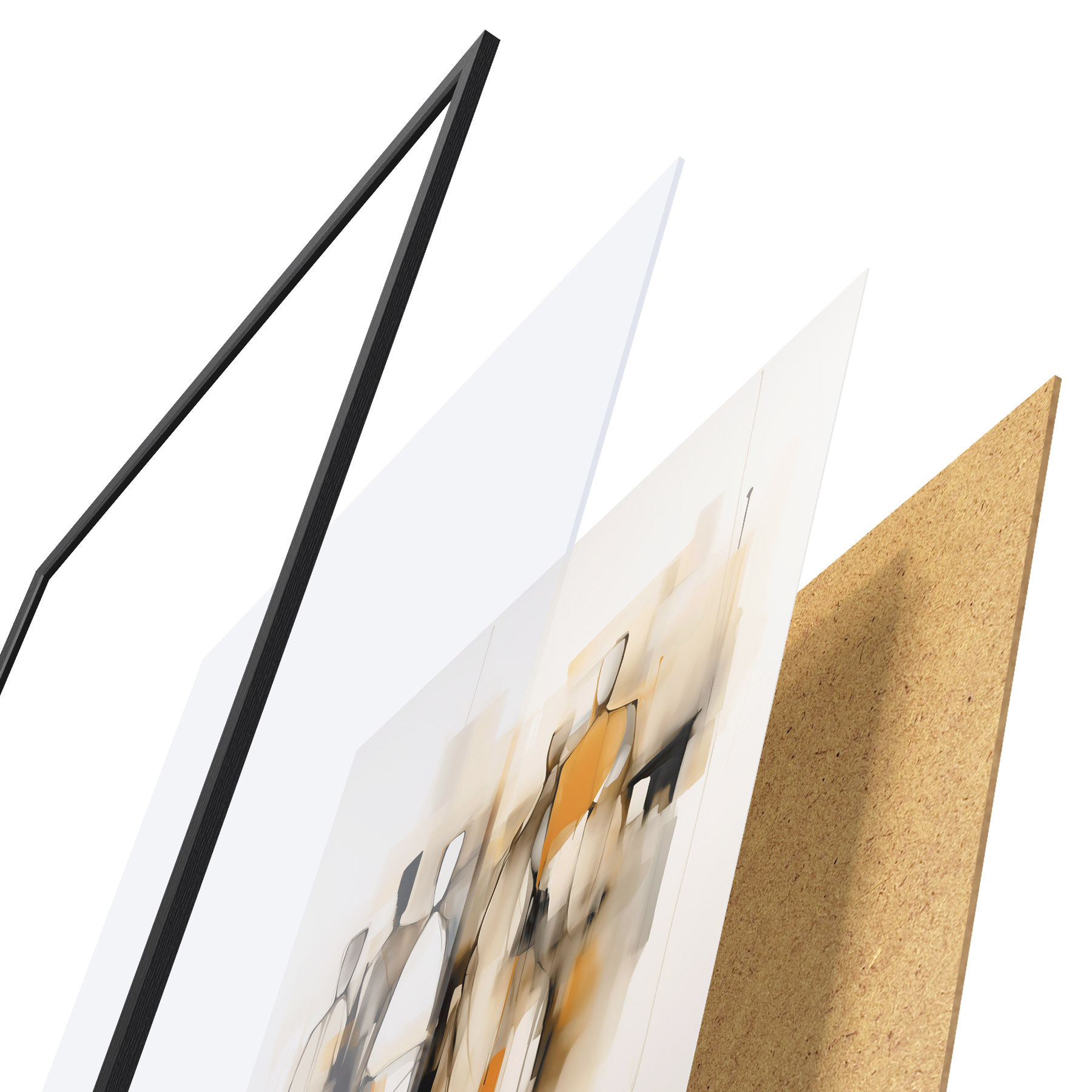 Plakát se skládá z rámu, plexiskla, tištěného obrazu a dřevotřískového podkladu. Díky úchytům na zadní straně lze plakát ihned zavěsit na zeď.