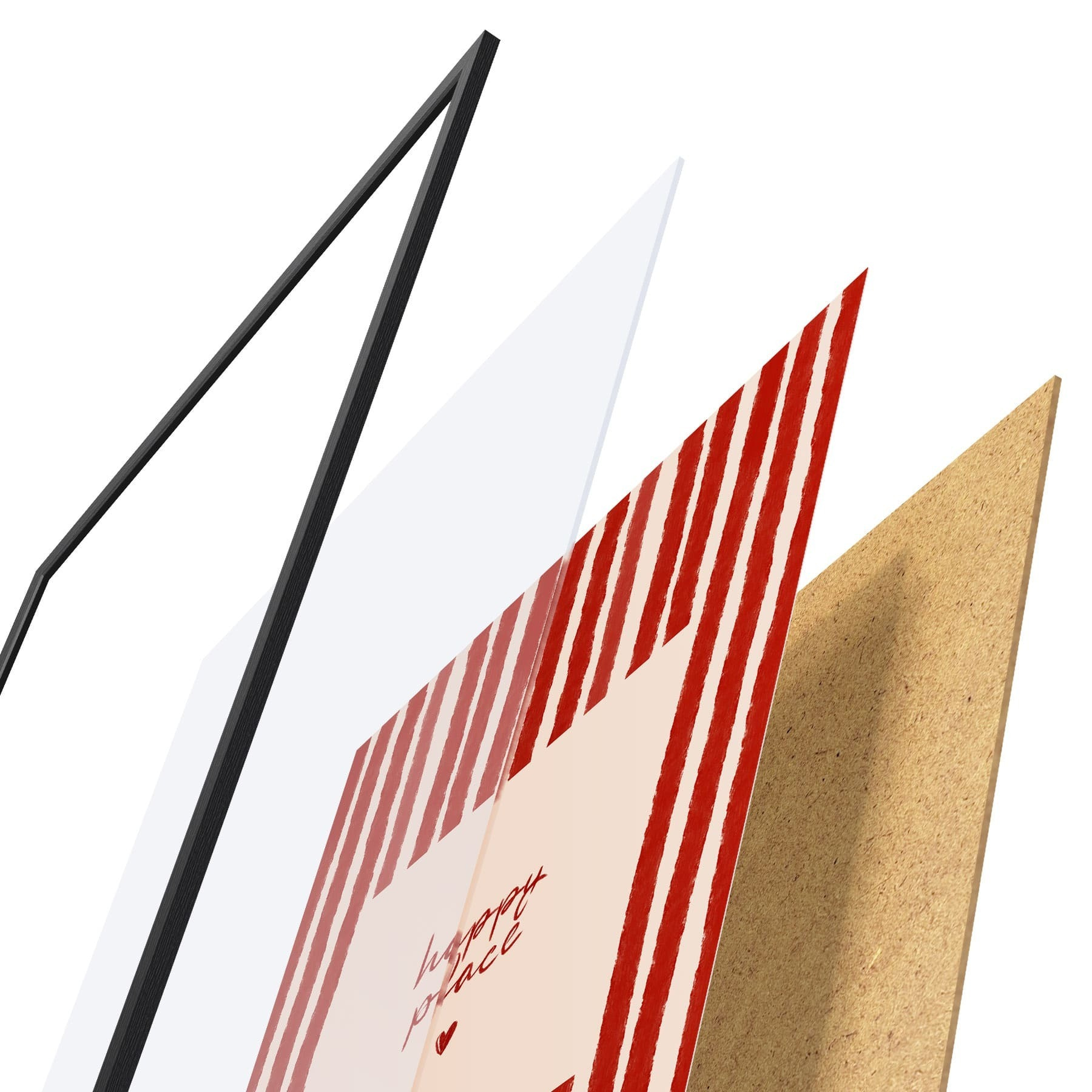 Plakát se skládá z rámu, plexiskla, tištěného obrazu a dřevotřískového podkladu. Díky úchytům na zadní straně lze plakát ihned zavěsit na zeď.