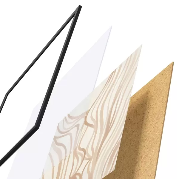 Plakát se skládá z rámu, plexiskla, tištěného obrazu a dřevotřískového podkladu. Díky úchytům na zadní straně lze plakát ihned zavěsit na zeď.